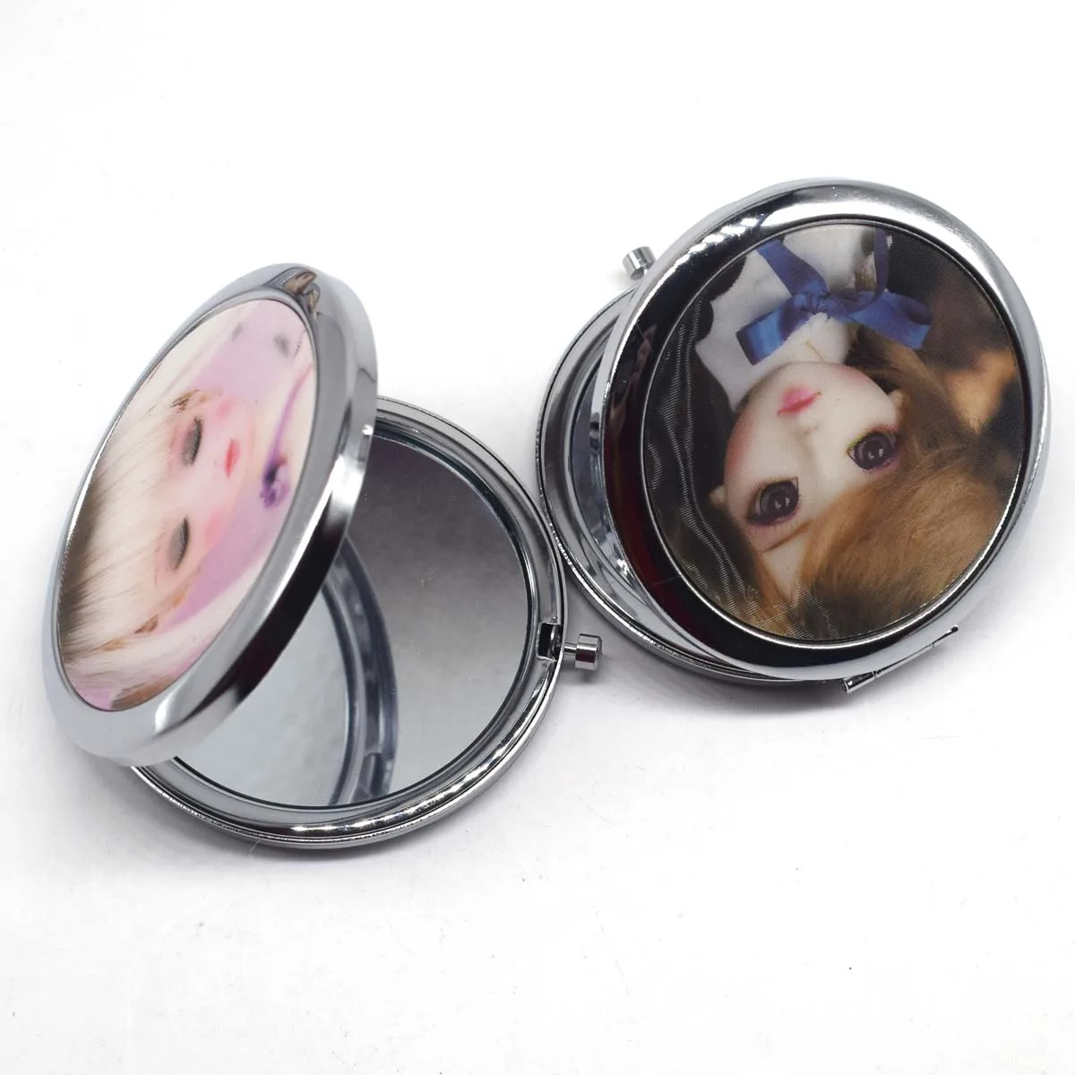 Stay flawless on the go with the Mini Pocket Dual-Sided Makeup Mirror, a portable and stylish cosmetic accessory. Featuring dual-sided stainless steel mirrors, it offers both a standard view and a magnified view for precise makeup application or touch-ups anytime, anywhere. Its compact, lightweight design fits easily in purses, handbags, or pockets, making it perfect for travel, work, or outings. The cute doll-inspired design adds a fun and decorative touch, while the durable construction ensures long-lasting use. Ideal for makeup enthusiasts, beauty lovers, or as a thoughtful gift, this mirror combines practicality, convenience, and style in one compact accessory. Perfect for everyday personal care and on-the-go beauty routines, the Mini Pocket Dual-Sided Makeup Mirror keeps you looking your best anytime, anywhere.