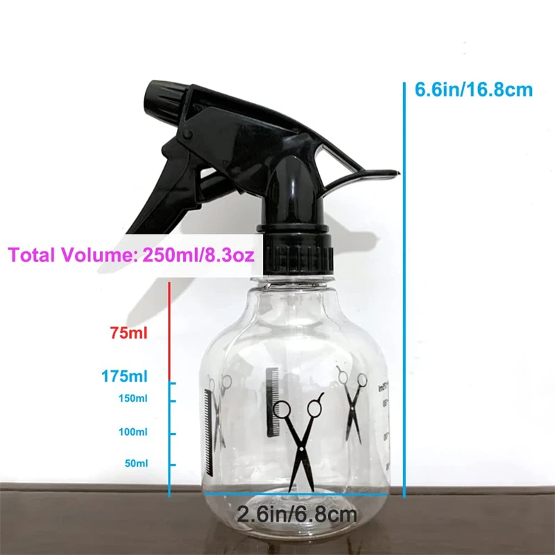 | Feature 1: | Clear Plastic Hairdressing Spray Bottle |